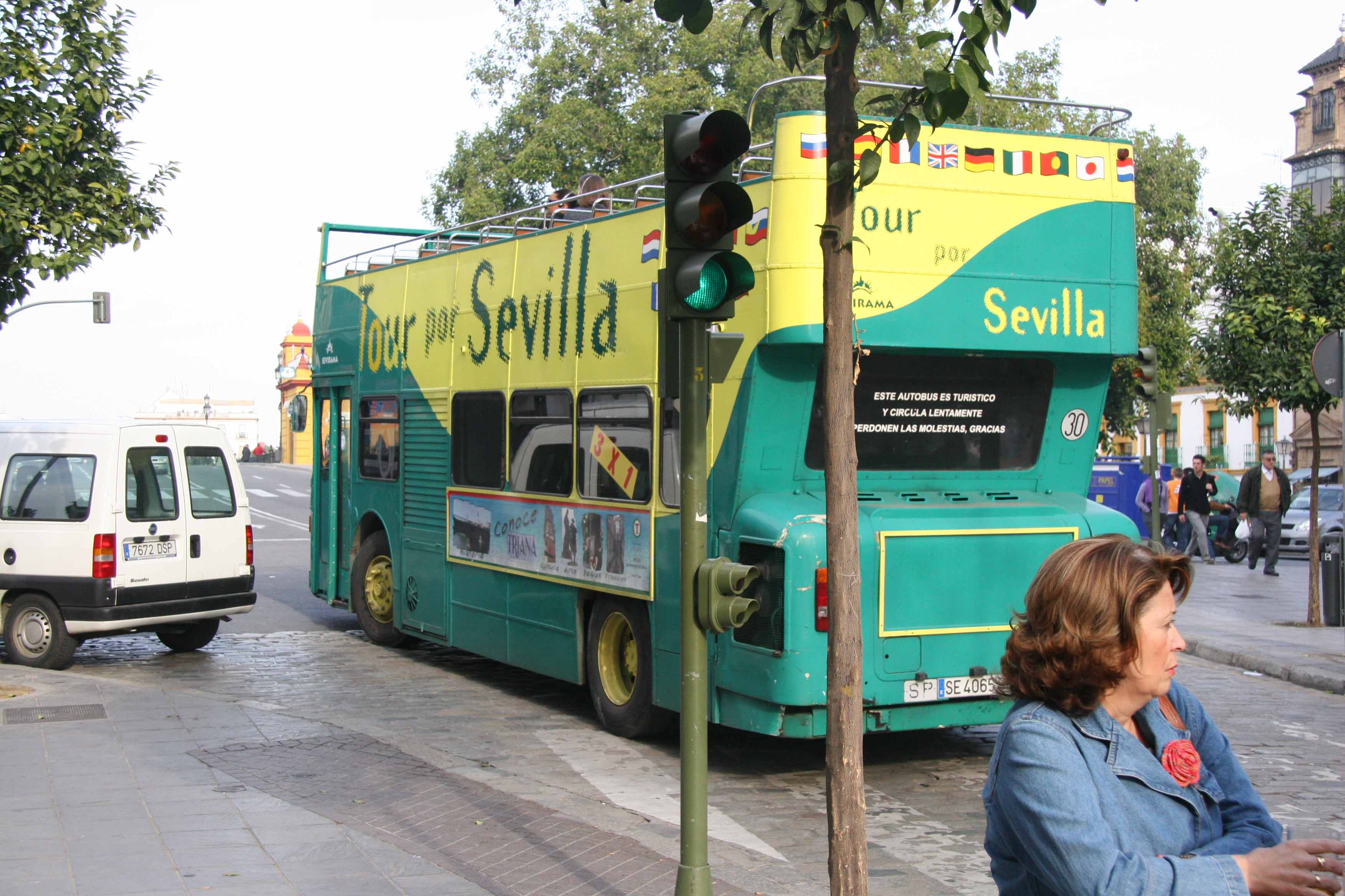 Tour bus drives by as we make our way out of Triana and across the bride to The Center